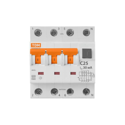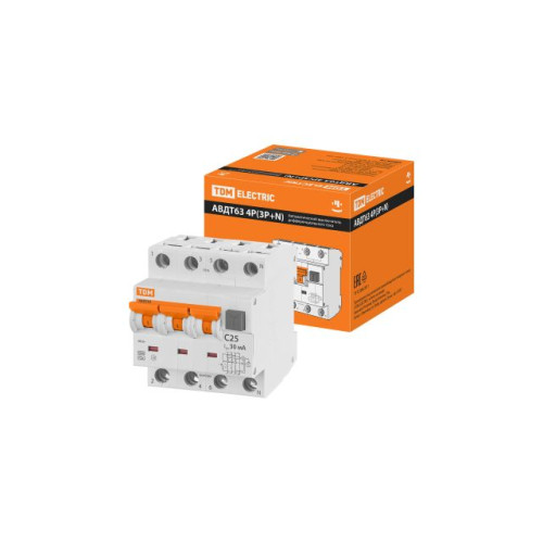 Выключатель дифференциальный автоматич. АВДТ-63/4P C25 30мА тип А TDM