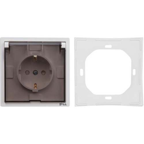 Розетка 1-ая с з/к крышкой прозрачн (скрытая, с/з, з/ш, брызг. защ.) белая, Carre, Bylectrica