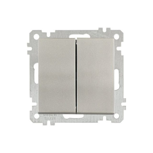 Выключатель 2-клав. (скр, б/рамки, пруж. заж) титан, CANDELA (DARIA), MUTLUSAN