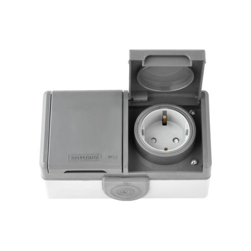 Розетка 2-ая (открытая, с/з, струезащ.) серая, Пралеска Аква, Bylectrica