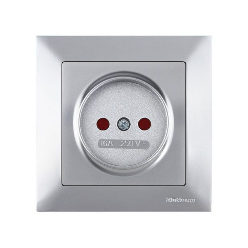 Розетка 1-ая (скрытая, б/з, шторки) серебро, DARIA, MUTLUSAN