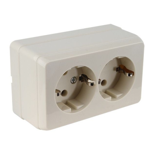 Розетка 2-ая (открытая, с/з, керамика) кремовая, BRON, MUTLUSAN