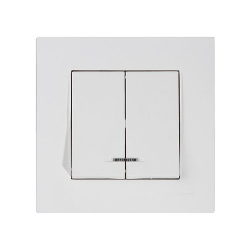 Выключатель 2-клав. (c подсветкой, скрытый, пруж. зажим) белый, RITA, MUTLUSAN