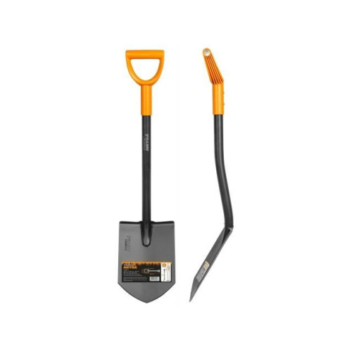 Назначение: для копания каменистой, глинистой и твердой почвы. Заточенное лезвие позволяет легко копать и перерезать корни. Сварное соединение между лезвием и черенком обеспечивает прочность инструмента. Благодаря своим размерам удобна для перевозки в багажнике автомобиля,