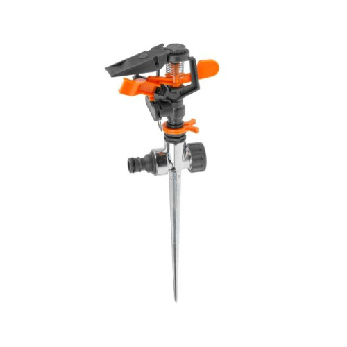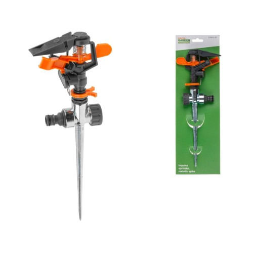 Назначение: предназначен для кругового или секторного стационарного полива на дачных участках, в садах, парках и скверах площадью до 500 кв.м. С помощью соединителя подключается к шлангу. Возможность регулировать площадь полива, а также последовательно подключать дополнительные распылители. Головка импульсного распылителя установлена на пике со штуцером и,