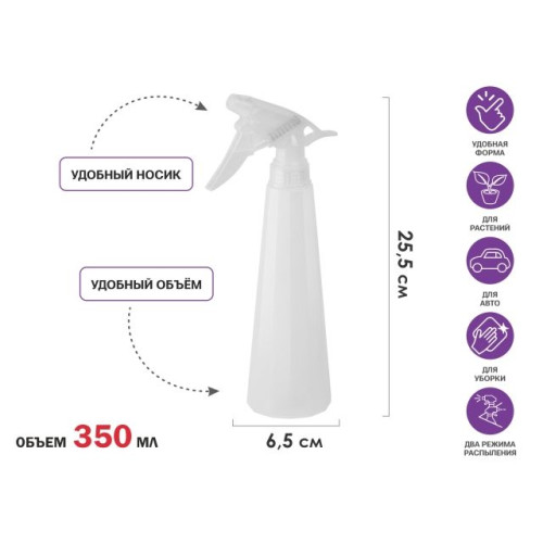Изготовлен из прочного пластика, поможет вам в опрыскивании цветочных клумб, а так же при уходе за вашими комнатными растениями.