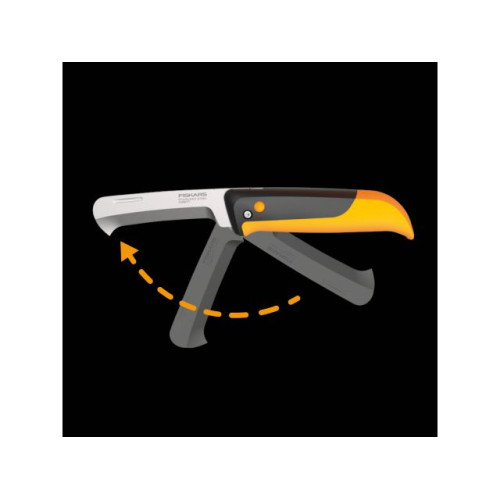 Лезвие из нержавеющей стали с прецизионной заточкой имеет изогнутый наконечник, что обеспечивает легкий доступ к стеблям через густой поросль, не повреждая при этом близлежащую растительность. Кнопочный замок этого складного ножа позволяет легко закрыть его или надежно удерживать в открытом состоянии