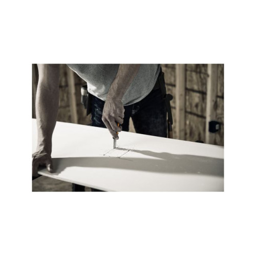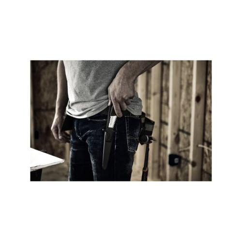 Позволяет быстро и эффективно резать гипсокартон благодаря прочному и сверхострому фиксированному лезвию и ножнам с зажимом для ремня.