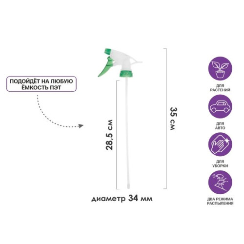 Имеет совместимую резьбу с любой емкостью ПЭТ.