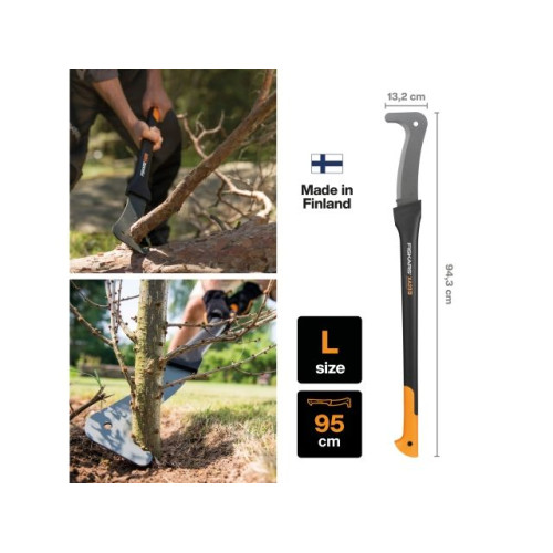 Большой секач для сучьев обладает всеми свойствами своего младшего брата. Благодаря полой легкой рукоятке из материала FiberComp удобно работать одной рукой. При рубке крупных веток можно использовать большой секач и работать двумя руками. Покрытие рукоятки из нескользящего материала SoftGrip обеспечивает безопасность во время рубки. Усовершенствованная форма лезвия спроектирована для большей эффективности при рубке мелких ветвей, для сбора веток.
