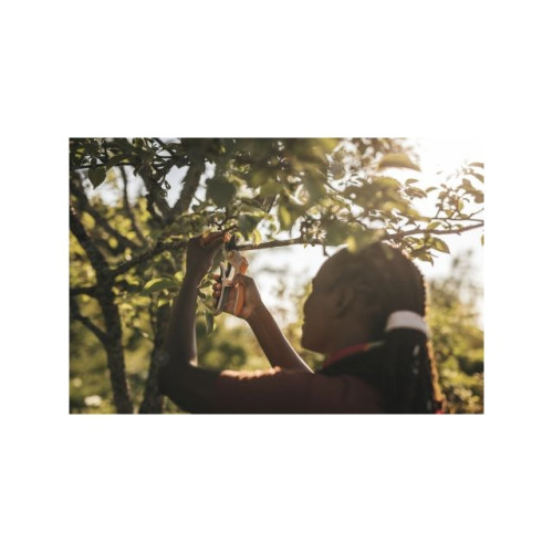 Ножницы имеют инновационную и легкую алюминиевую ручку, которая адаптируется к форме руки пользователя и снижает нагрузку на руку. Удобное покрытие SoftGrip на рукоятке гарантирует надежный захват. Легкодоступный скользящий замок облегчает ввод в эксплуатацию.