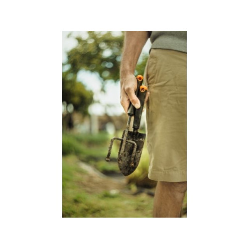 Полотно инструмента покрыто антикоррозийным защитным слоем, благодаря чему не подвержено ржавчине. Ручка инструмента выполнена из полиамида и обладает эргономичной формой.