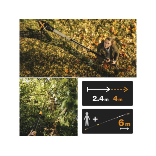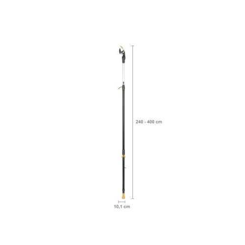 Длина рукоятки регулируется в диапазоне от 2,4 метров до 4 метров, позволяя работать на расстоянии до 6 метров