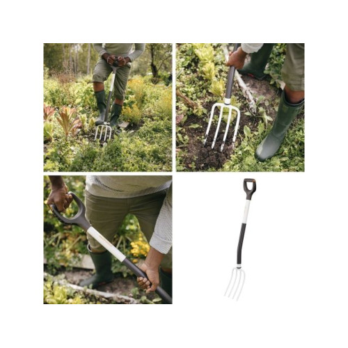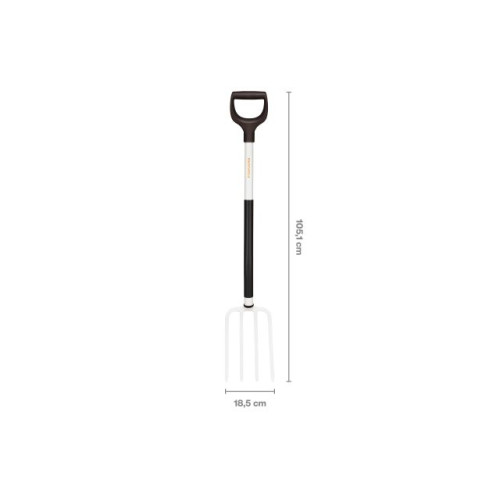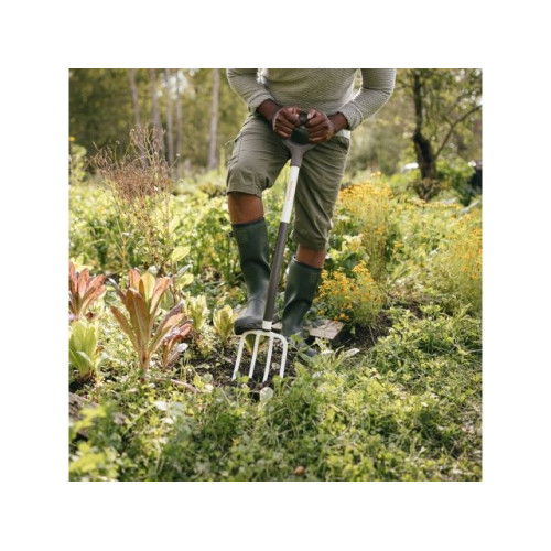 Обладают зубьями из борсодержащей закаленной стали. Алюминиевый черенок оснащен D-образной рукояткой для удобства работы. Вилы подойдут для рыхления, вскапывания почвы, а также уборки мусора. Размер: 1052х185х105 мм.