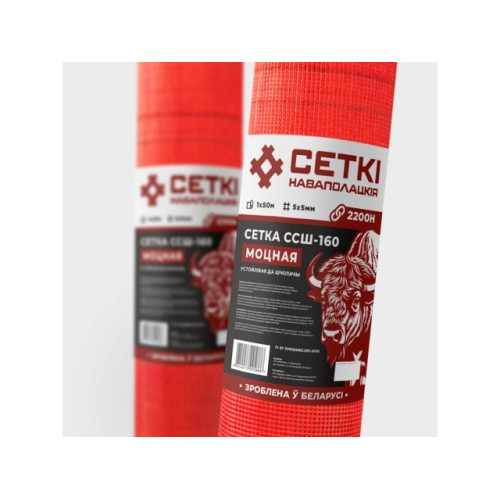 Стеклосетка штукатурная 5х5, 1мх50м, ССШ-160 МОЦНАЯ красная РБ