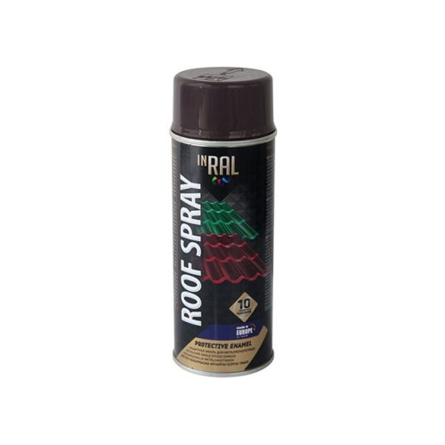 Краска-эмаль аэроз. для мелалл. конструкций INRAL 400мл - быстросохнущая аэрозольная краска на алкидной основе для декоративной покраски кровельных покрытий и водостоков в местах повреждений/для удаления дефектов. Для внутренних и наружных работ. Обладает отличным блеском и покрываемостью поверхностей. Не обладает антикоррозийными и защитными свойствами. Инструкция по эксплуатации: очистите и обезжирьте поверхность. Энергично встряхните баллон в течение 1 мин. Равномерно распылите на поверхность с расстояния 30см. Рабочая температура: +10°C…+25°C. Наилучшая температура покраски: +20°C. Время сушки: 10мин. Если температура ниже +18°C, время высыхания увеличивается. Рекомендуемое количество слоев: 2-3. Площадь покрытия: 2м2. Хранить в недоступном для детей месте. Хранить в вертикальном положении в сухом месте при температуре +5°C…+25°C. Не подвергайте баллоны воздействию прямых солнечных лучей или нагреванию свыше +50°C. Температура транспортировки: -15°C…+25°C.