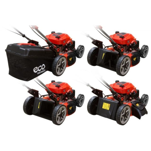 Газонокосилка, оснащенная двигателем ECO MX196 с мощностью 6 л.с стандарта EURO5. Двигатель оснащен автоматической воздушной заслонкой, которая облегчает пуск двигателя. В отличие от моделей без автоматической заслонки нет необходимости подкачивать топливо перед запуском.