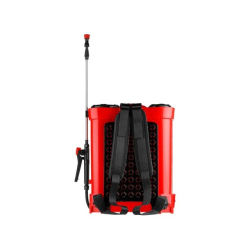 Аккумуляторный садовый опрыскиватель оборудован 16-литровым баком для жидкости, функционирует от литий-ионной батареи. Устройство применяется для работ в саду: обработки удобрениями или бережного орошения растений. Имеется регулировка подачи жидкости. Давление создается одним нажатием кнопки. Благодаря широкой горловине основной бак легко заполнить жидкостью.