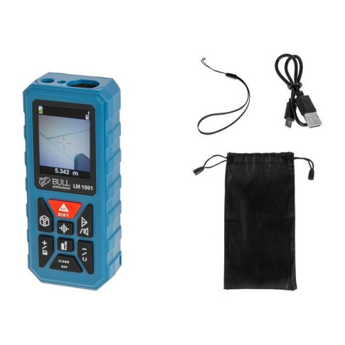 Высокоточный лазерный дальномер BULL LM 1001 идеально подходит для быстрых измерений при выполнении строительно-монтажных, планировочных и геодезических работ. Все благодаря исключительной точности с погрешностью - 1,5 мм и максимальному диапазону измерений в 100 метров.