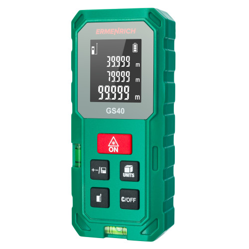 Лазерная рулетка Ermenrich Reel PLUS GS40 является оптимальным выбором для строительных и ремонтных работ. Она позволяет с точностью измерять расстояние в пределах 40 метров, даже в сложных условиях – функция «Пифагор» помогает рассчитывать дальность нужной точки по косвенным измерениям. Также есть возможность измерения площади и объема.