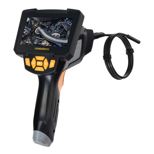 Технический эндоскоп Ermenrich Seek VE40 предназначен для осмотра трудноступных мест при ремонте трубопроводов и систем вентиляции, обслуживании промышленного оборудования и автомобилей, строительстве зданий. Эндоскоп оснащен цветным ЖК-дисплеем с диагональю 4,3. На полужестком кабеле расположена камера для фотосъемки в качестве 1280x720 пикс и записи видео в качестве 640x480 пикс.