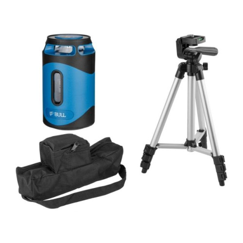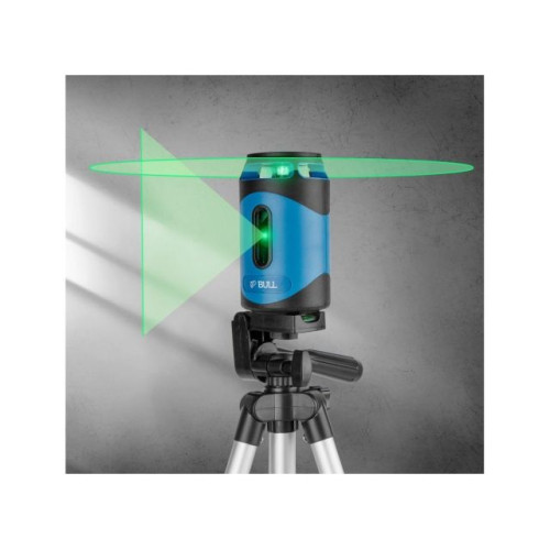 Компактный нивелир отличается зеленым диодом, позволяющим работать в условиях высокой освещенности. Лазерный нивелир BULL оснащен немецкими LD лазерами компании OSRAM. Инструмент имеет проекцию креста. Боковые грани корпуса прорезинены, что выполняет противоударную функцию. Кроме того у инструмента есть возможность фиксации лучей. Для удобства эксплуатации предусмотрена регулировка яркости луча. Поставляется в комплекте со штативом 1м.