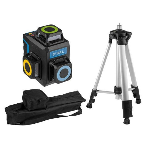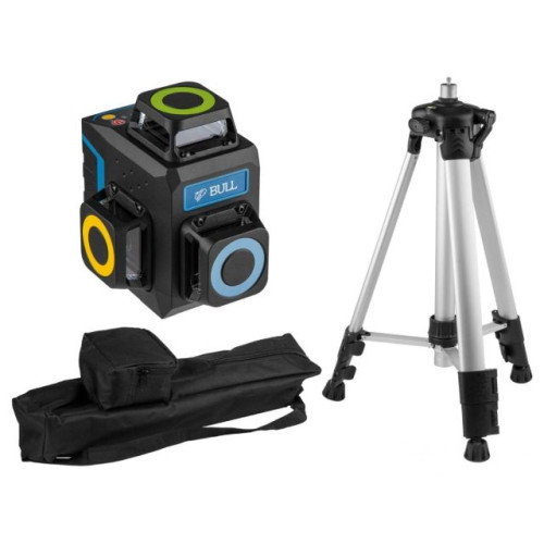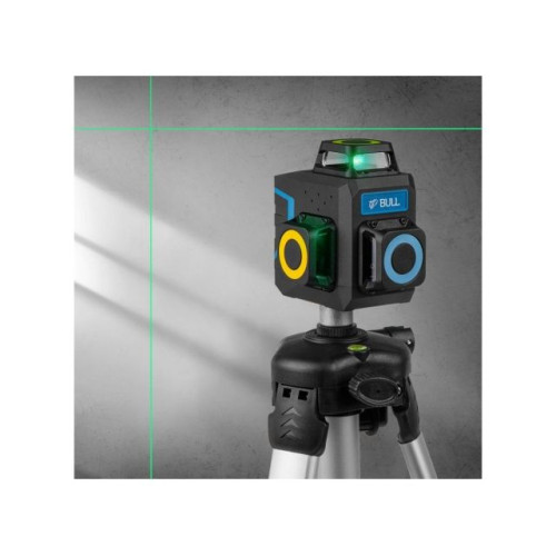 Компактный нивелир отличается зеленым диодом, позволяющим работать в условиях высокой освещенности. Лазерный нивелир BULL оснащен немецкими LD лазерами компании OSRAM. Имеет проекцию трех плоскостей по 360 градусов. Корпус прорезинен, что выполняет противоударную функцию. Может быть использован как внутри помещения так и вне помещения для измерения до 60 м с приемником. Управление может осуществляться дистанционно за счет специального пульта. Товар поставляется со штативом 1,2 м.