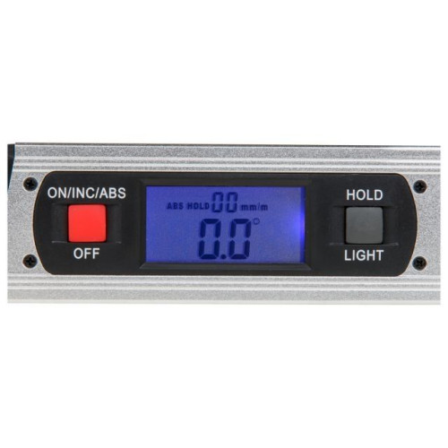 Электронный уровень используется для измерений при проведении строительных работ. Точные данные выводятся на ЖК-дисплей с подсветкой. Результаты в градусах отображаются крупными цифрами. Есть функция рекалибровки. Горизонтальный и вертикальный пузырьковые уровни позволяют выполнять контроль поверхностей без применения электроники.