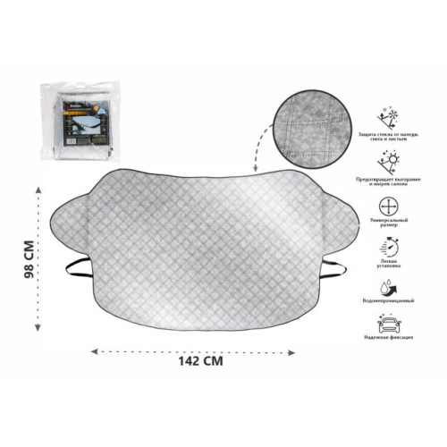 Размер изделия 142x98 см, что позволяет использовать его на большинстве стандартных автомобилей.