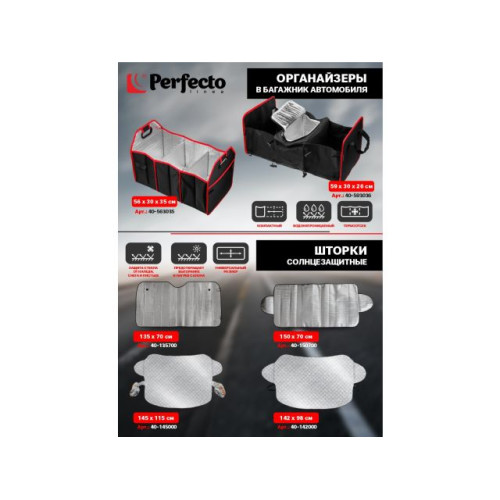 40-152270 Органайзер на спинку сидения автомобиля, складной, 52х27 см, PERFECTO LINEA,