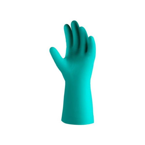 Защитные перчатки из нитрила. Внутри флокированы 100% хлопком. Обладают высокой устойчивостью к водорастворимым неорганическим кислотам (до 80%), щелочам (до 40%), солям, спиртам, растворителям. Текстурная поверхность ладони в виде ромбов для лучшего захвата. Слегка расширенная манжета для вентиляции. Отличная эластичность и комфорт. Высокая износоустойчивость. Индивидуальная упаковка.