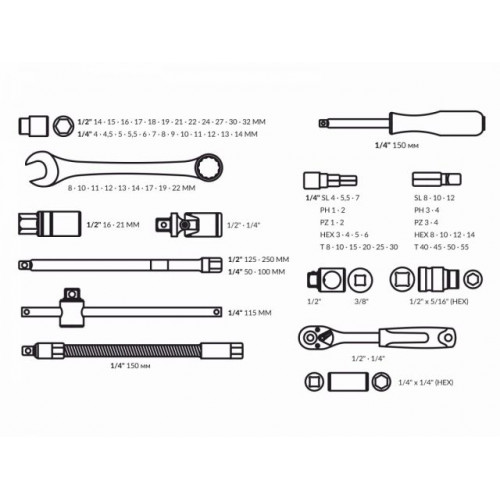 Назначение: многофункциональный набор предназначен для ремонта и обслуживания автомобиля,