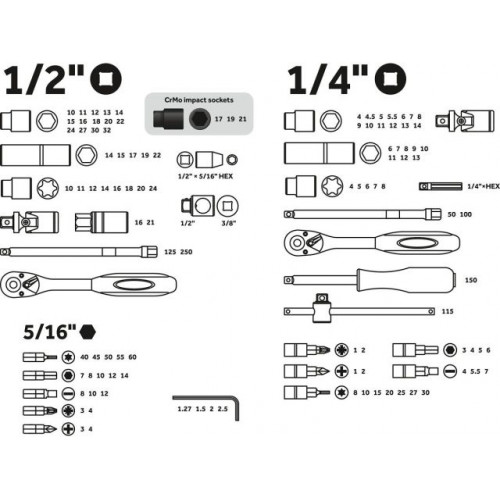 Набор головок и бит 110пр. 1/4",1/2" PRO STARTUL LE MANS (PRO-110L)