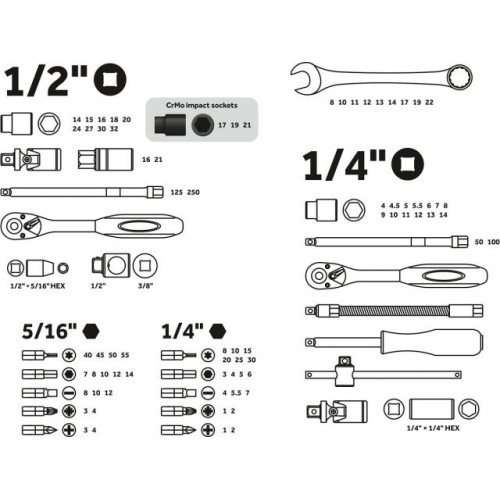 Набор головок и ключей 82пр. 1/4",1/2" PRO STARTUL LE MANS (PRO-082L)