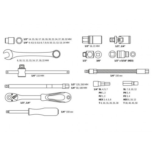 Назначение: многофункциональный набор предназначен для ремонта и обслуживания автомобиля,