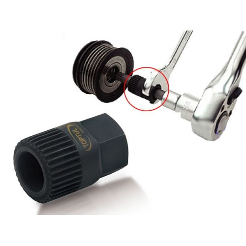 Съемник шкива генератора TOPTUL имеет специальную конструкцию для остановки шкива и снятия центрального крепежного болта. Применяется с 17 мм гаечным ключем и битой M10. Подходит для Audi, VW, Volvo и других автомобилей. Рекомендуется для профессионального использования.