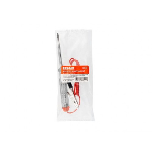 Автотестер универсальный REXANT предназначен для быстрой и эффективной диагностики электрооборудования автомобилей. Позволяет определить полярность напряжения (+/-), выявить обрыв проводки или проверить предохранители. Корпус выполнен из ударопрочного пластика и снабжен проводом с зажимом типа <крокодил> и световым индикатором.