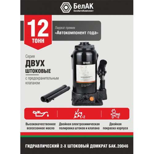 Двухштоковый домкрат БелАК БАК.20046 (12 тонн) - простое и компактное приспособление для подъема грузов. Оснащен дополнительным (вторым) штоком, который обеспечивает двукратное увеличение высоты подъема по сравнению с домкратом с одним штоком.