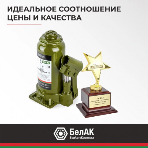 Домкрат ECO 10 тонны «БелАК» БАК.70017 служит для плавного и безопасного подъема автотранспорта весом не более 10 т.