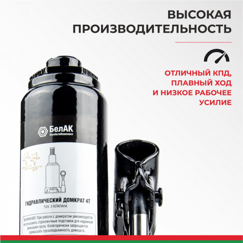 Домкрат гидравлический БелАК (TUV, 2 клапана) 4 т.