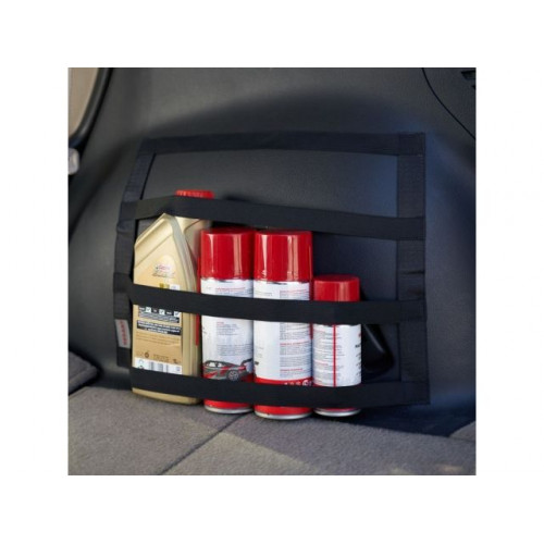 Карман надежно прикрепляется к ворсовому покрытию багажника при помощи липучки и предназначен для фиксации различного рода предметов, таких как огнетушители малых объемов, баллоны с автохимией, браслеты противоскольжения, аптечки, перчатки, салфетки и т. п.