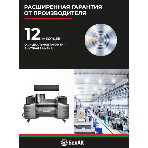 Автомобильный двухпоршневой компрессор "Мистраль-40" БАК.99156 разработан российским производителем «БелАК», награждённым девятью национальными премиями «Автокомпонент года» за высокое качество выпускаемой продукции. Компрессоры «БелАК» соответствуют нормам сертификации ISO9001 и ЕАС.