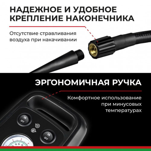 Мощный светодиодный фонарь облегчает использование компрессора в ночное время, и расширяет возможности его применения.