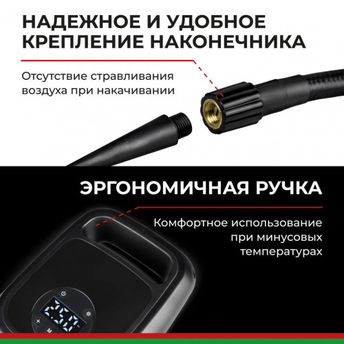 Мощный светодиодный фонарь облегчает использование компрессора в ночное время, и расширяет возможности его применения.