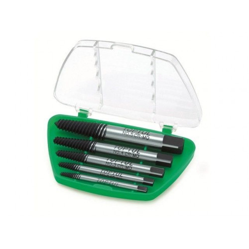 Набор экстракторов TOPTUL состоит из 5 инструментов диаметром 1/8", 1/4", 5/16", 7/16" и 9/16". Экстракторы предназначены для извлечения болтов с поврежденной или отсутствующей головкой. Набор упакован в пластиковый кейс.