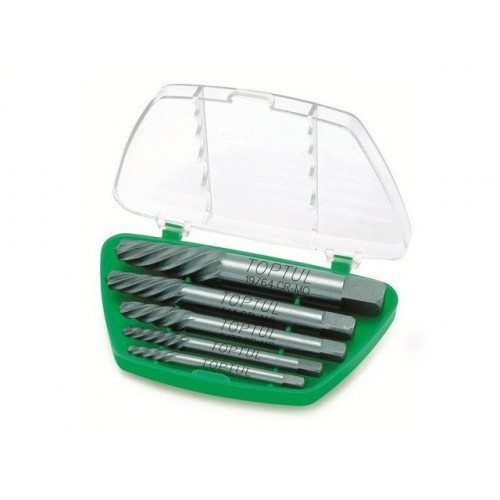 Набор экстракторов TOPTUL состоит из 5 инструментов диаметром 7/64", 9/64", 5/32", 1/4" и 19/64". Экстракторы предназначены для извлечения болтов с поврежденной или отсутствующей головкой.