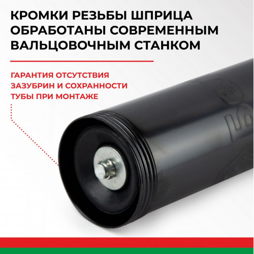 Данный шприц подходит как для загрузки смазки в стандартной тубе (500 мл), так и ручным способом. При ручной закладке смазки следует помнить, что необходимо максимально ровно распределять смазку по всей площади корпуса шприца и не допускать образования полостей, заполненных воздухом. Такие полости впоследствии могут давать эффект "ложного смазывания", когда вместо консистентной смазки из шприца к узлу подаётся воздух.