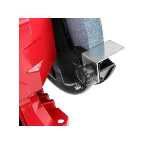 Модель BG 1530 покрыта термостойкой краской, оснащена защитными щитками и металлическими кожухами для безопасного использования. Также, станок имеет устойчивое основание и пылезащищенный выключатель, а два установленных круга имеют разную зернистость (мелкую и крупную).