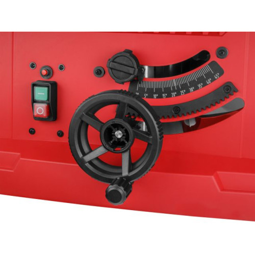 Модель распиловочного станка предназначена для продольного, поперечного и наклонного реза деревянных заготовок. Эффективная работа станка обеспечивается мощным двигателем 2000 Вт. Безопасная работа пользователя обеспечивается благодаря защитному кожуху. Режущим элементом выступает пильный TCT диск с 40 зубьями. Для создания диагональных распилов в комплекте с изделием предназначен угловой упор (также в комплекте есть параллельный). На станке присутствует возможность изменения угла пропила от 45 до 90 град., а также изменять высоту пропила от 0 до 85 мм. Модель также обладает двухсторонней шкалой для удобного выставления параллельного упора. Данный станок является настольной версией и не обладает съемной станиной в комплекте. Также в данной комплектации отсутствуют расширители.