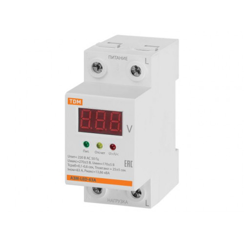Реле напряжения 1ф АЗМ-LED с LED-дисплеем 63А-230В TDM